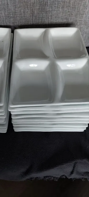 - 18 pcs Square Ceramic White Nibbles Serving Dish.