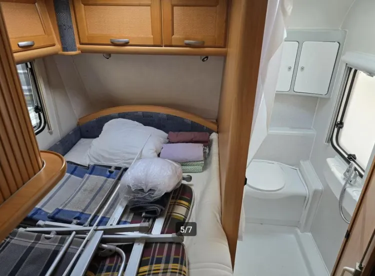De caravan is uitgerust met een Frans bed, een in de lengte geplaatst tweepersoons bed. Dankzij de traagschuim matrassen en lattenbodems op de bedden kunt u genieten van een extra comfortabele ligging. In de comfortabele badkamer van deze caravan vindt u behalve een wastafel ook een ingebouwd cassettetoilet. Ook is de caravan uitgerust met een douchegelegenheid, zodat u aan boord kunt douchen.