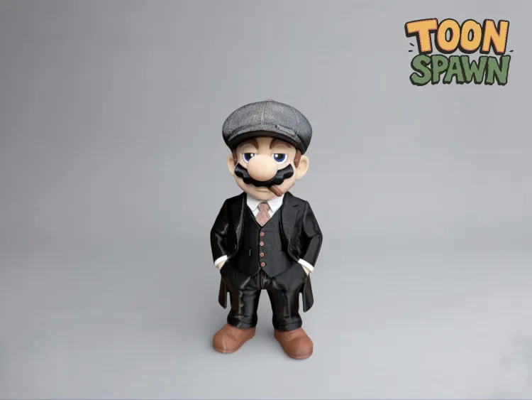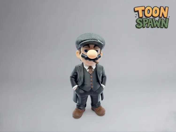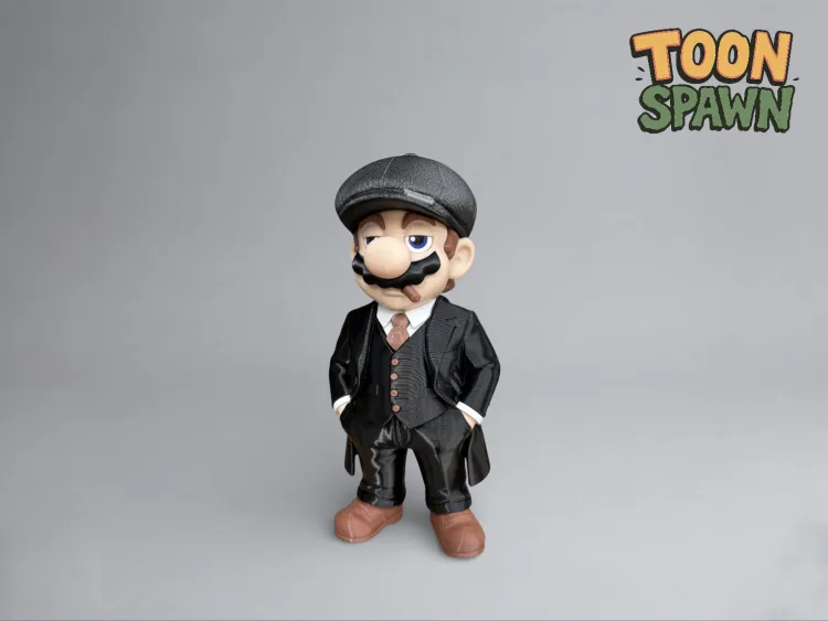 Dit fanmade item combineert de iconische gameheld Mario met de stoere stijl van een klassieke gangster-figuur, geïnspireerd door Tommy Shelby. Een unieke mash-up die perfect past bij liefhebbers van games, films en popcultuur.