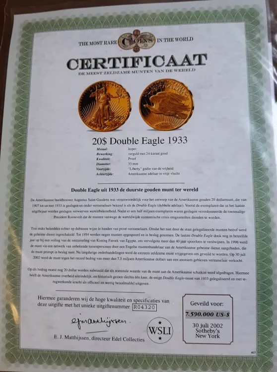 - Te koop nieuwe munt, 20 dollar Double Eagle 1933.
