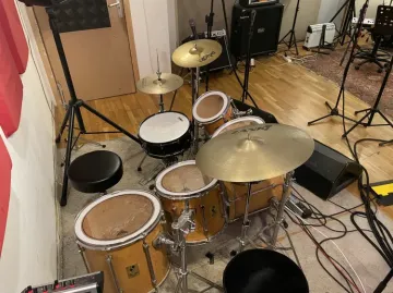 - een drumkit. Wel zelf bekkenstandaards, snare en bekkens meenemen.