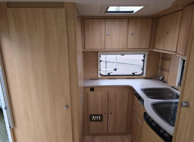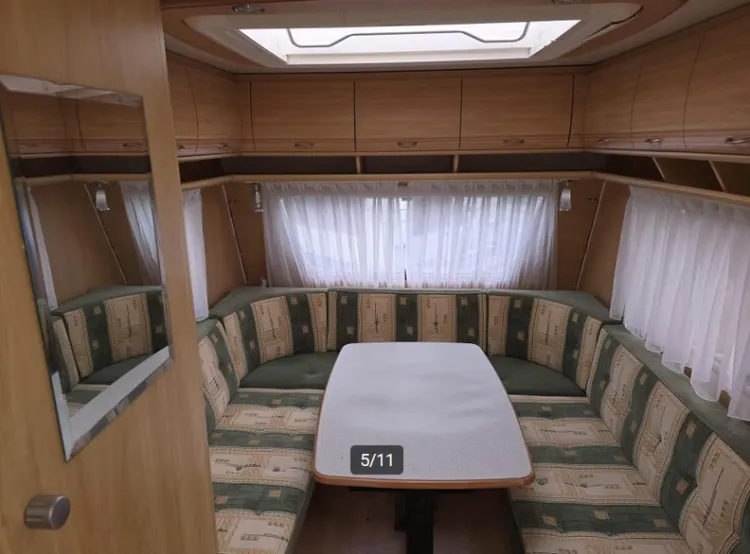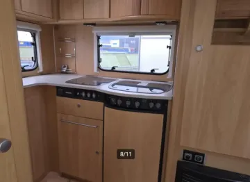 De gezellige en handige rondzit waar de caravan over beschikt, kan ook dienen als slaapgelegenheid. Het keukenblok aan de achterzijde van de caravan is zeer compleet uitgevoerd. Een ingebouwde boiler voorziet u van warm water. Om uw etenswaren op te bergen is er een koelkast (110 liter) met vriescompartiment ingebouwd.