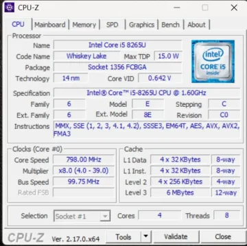 processorsnelheid 1.7GHz met turbo tot 3.6GHz