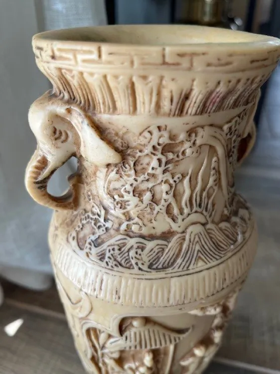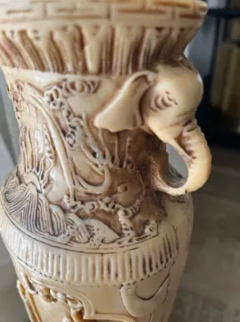- Oude Chinese resin vaas (hoogte 29 cm) met sculptuur van olifanten