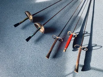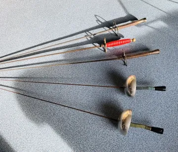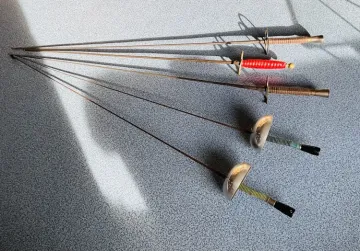 - Te koop t.e.a.b. Mooie Floretjes voor de schermsport. Set van 5 stuks in gebruikte staat (vintage en oud!)